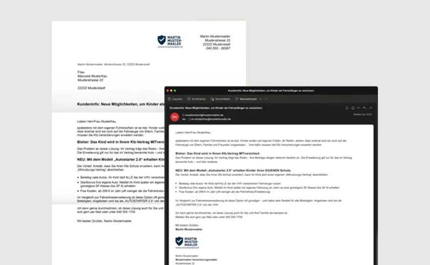 Mit unseren vorbereiteten Anschreiben erreichen Sie Interessenten schnell, professionell und ohne großen Aufwand – sowohl per klassischem Postversand als auch per E-Mail. Nutzen Sie diese Möglichkeit, um einen ersten positiven Eindruck zu hinterlassen und Interesse zu wecken.